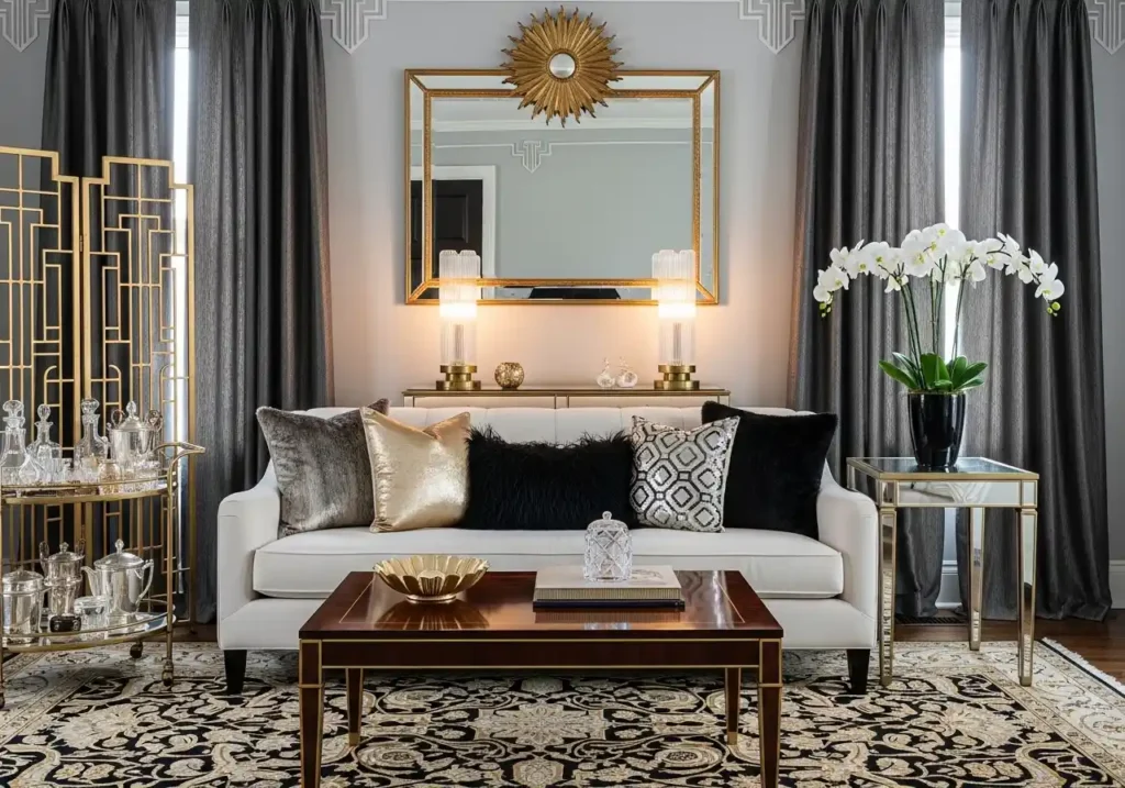Mirrored dressers, side tables, or cabinets add sparkle and sophistication. They enhance natural light and make rooms feel larger. The reflective surfaces perfectly capture the glamour of the 1920s. Keep surrounding decor minimal for a balanced look.