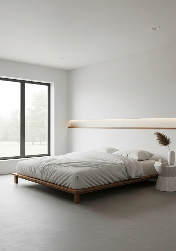 Low beds feel modern and sleek. They enhance visual spaciousness. Simple frames reduce bulkiness. Platform beds suit minimalist styles. Clean silhouettes promote calm design. Less height feels grounding.