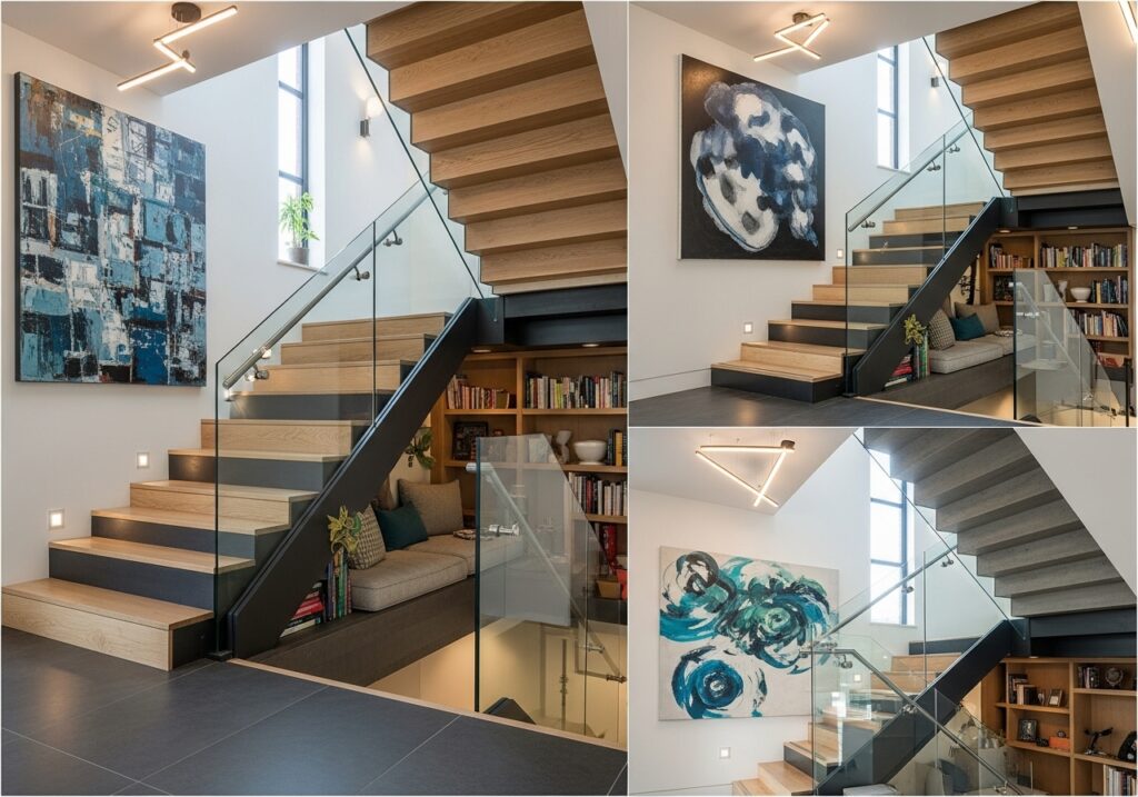 Go bold with floating staircase ideas or metal touches. These look sleek and work well in modern homes. Match them with smart lighting and soft colors.